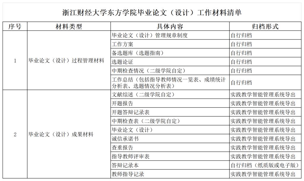 根据学院教学计划,现安排2026届学生毕业论文(设计)写作工作。毕业论文(设计)工作按照《浙江财经大学东方学院实践教学工作管理暂行规定(试行)》(浙财大东〔2021〕141号)、《浙江财经大学东方学院本科毕业论文(设计)工作管理规定》(浙财大东教〔2022〕41号)和《关于认真学习和落实教育部<学位论文作假处理办法>的通知》(浙财院东〔2013〕26号)文件执行。
