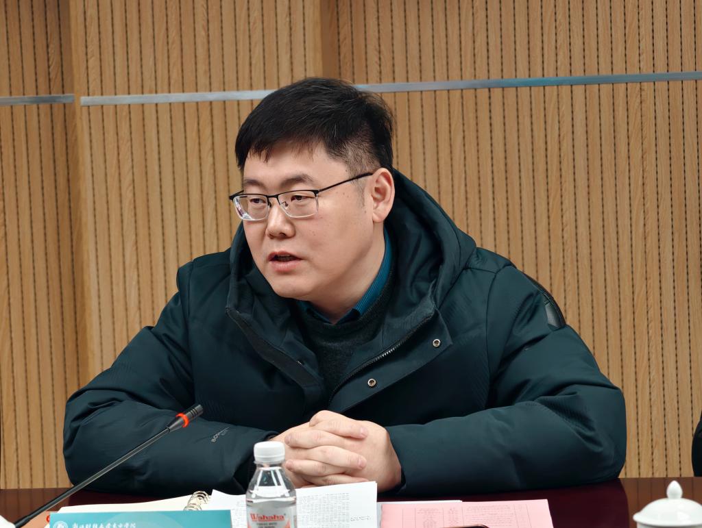 会议第二阶段,金融与经贸学院院长李忠围绕学院发展定位、专业设置、师资队伍建设及人才培养成效等方面进行了系统阐述,重点介绍了学院在国际经济与贸易、跨境电子商务等专业领域的办学特色和实践教学成果。